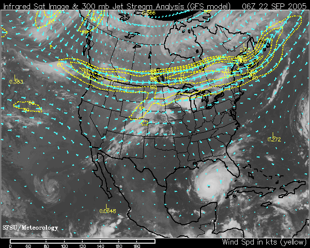 Satellite jetstream and wind map 0600 GMT (02:00 AM EDT) Sep. 22, 2005