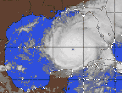 Note:**National Hurricane Center RECCO as of 1758GMT (1:58 PM EDT) report winds for Rita to be 100 mph at the altitude of 5774 feet (altitude of the monitoring aircraft) Lat. = 25.1 North, Long. = 89.0 West