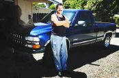 A few weeks ago, Santos rigged his 2000 Chevrolet Silverado 1500 pickup to separate purified water mixed with sodium hydroxide into hydrogen and oxygen using electricity.