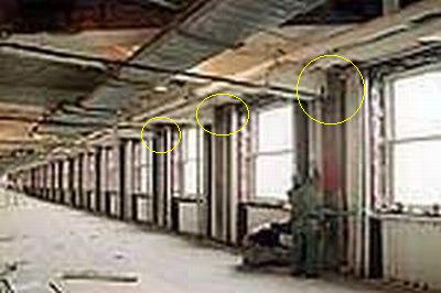 This photo of the right edge of the Target Wall.shows NO GAPS making a fable out of the claim that Wedge One had special bomb-proof walls all around. Only the 75 FOOT Target Wall had gaps between the wall and floor support beams.