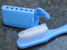Originally developed in 1969 the Blotting Brush is generally smaller and has textured bristles that are thinner than in conventional brushes. The bristles are designed to go under the gumline and between the teeth to draw in plaque and particles of food. You can floss with the bristles too.
